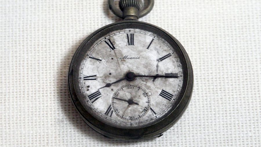 | Un reloj de bolsillo parado a las 8:15, hora en la que estalló la bomba atómica en Hiroshima. EFE/KIMIMASA MAYAMA |